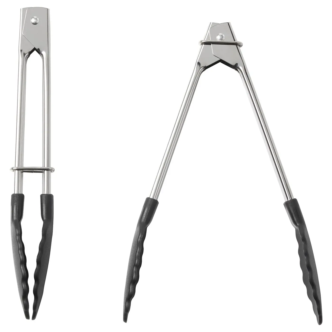 The handle of the tongs has a closing mechanism for easy storing and a spring that makes them easy to use.